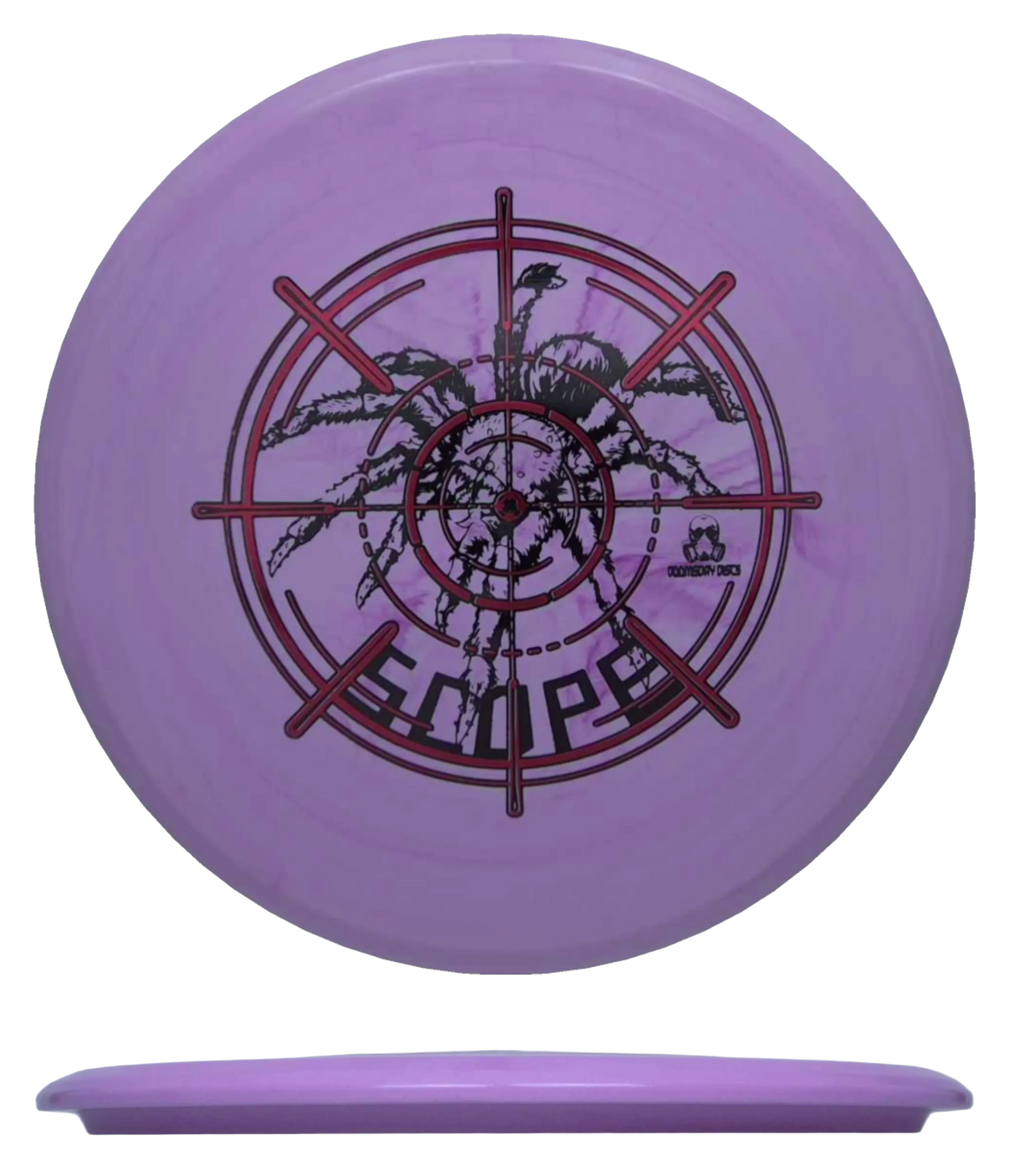 The Doomsday Discs Scope is a torque-resistant approach mid with a unique rim that feels natural in hand. It releases clean on forehand or backhand and flies straight with a confident, on-command finish—perfect for precise placements.