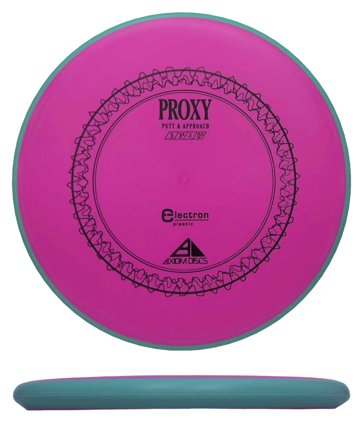 Score laser-straight putts and tee drives with the Axiom Proxy. Rated 3 | 3 | -1 | 0.5, it glides flat, flips smooth and lands softly. Low-profile rim feels clean in any hand, inspiring instant confidence. Electron grips in all weather, Fission lightens your load, Glow shines after dark and Plasma adds swirl-packed style.