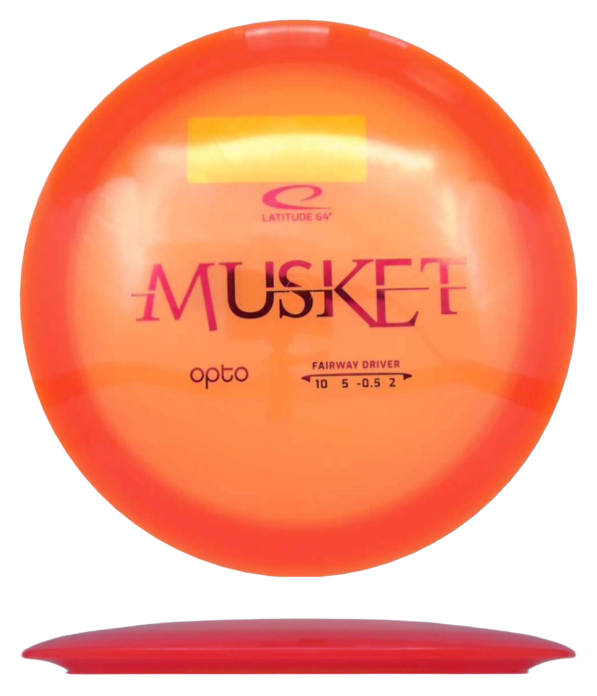 The Latitude 64 Musket is a high-performing fairway driver known for its straight-flying capabilities, making it an excellent choice for players seeking both accuracy and distance. Released as part of the 2018 Trilogy Challenge, the Musket is celebrated for its ability to produce consistent flights and land close to the basket, especially useful for making birdies from the tee. Its flight numbers are Speed 10, Glide 5, Turn -0.5, and Fade 2, indicating a balance between speed and control, suitable for narrow fairways and long approaches.